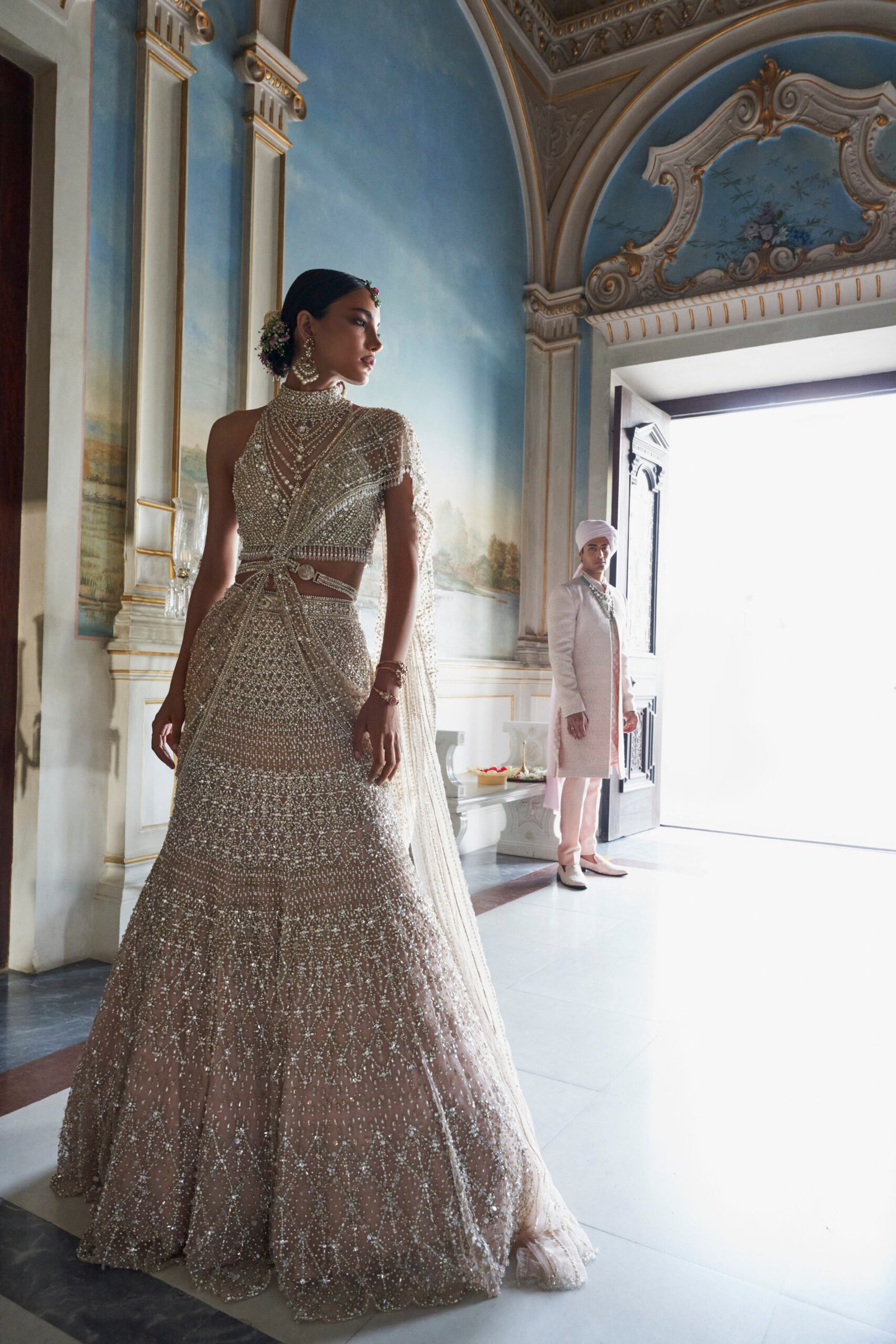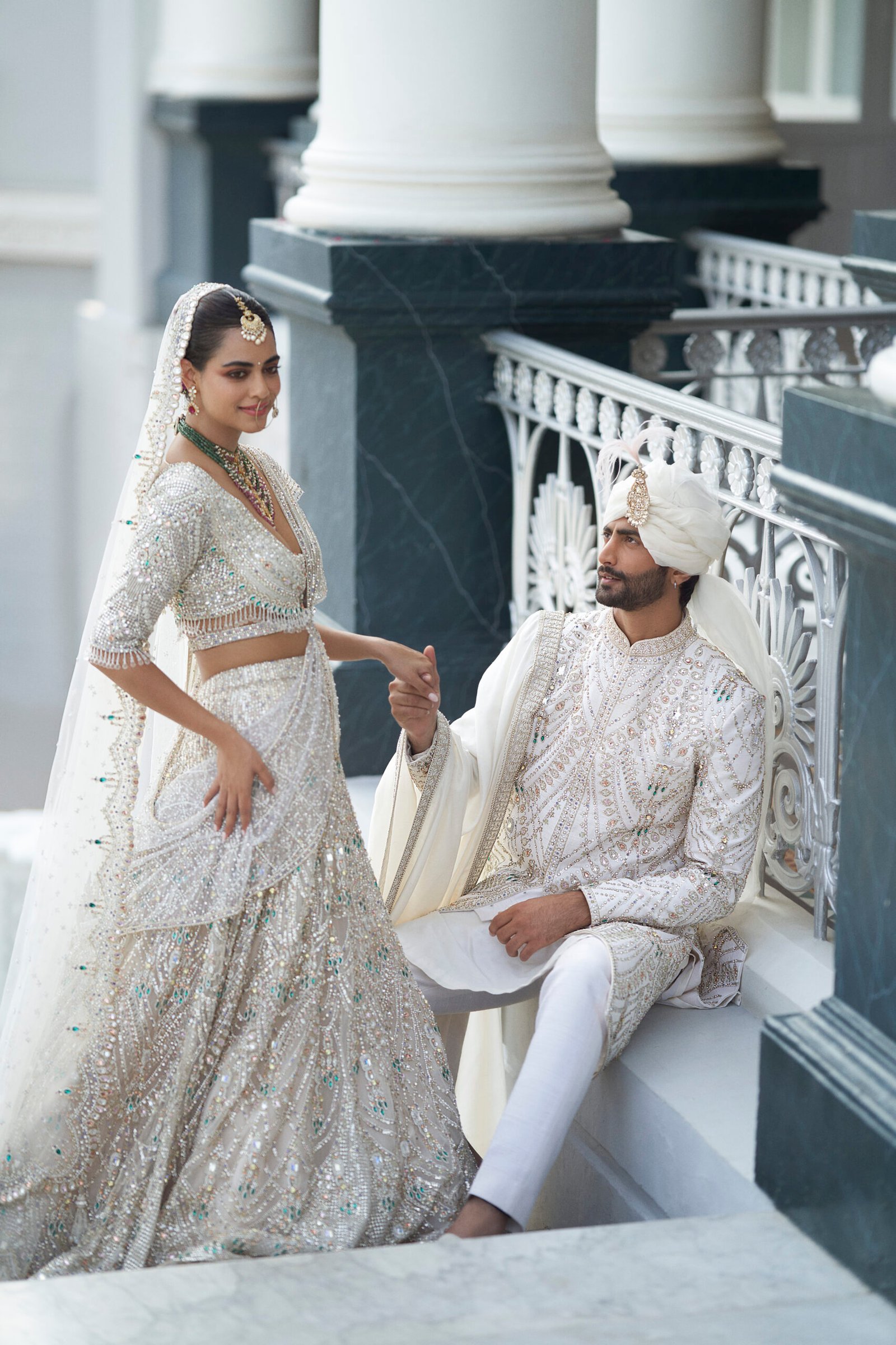 We knew we had to blend in Indian, traditional elements to create something that was an amalgamation of both. And so we did that and created something that was unique and quite never-seen-before in the traditional bridal wear scenario, like adding opulent feathers to a traditional lehenga and blouse or giving the veil a modern, contemporary twist. We enjoy ideating newer ways to infuse both elements in our Indian wear.